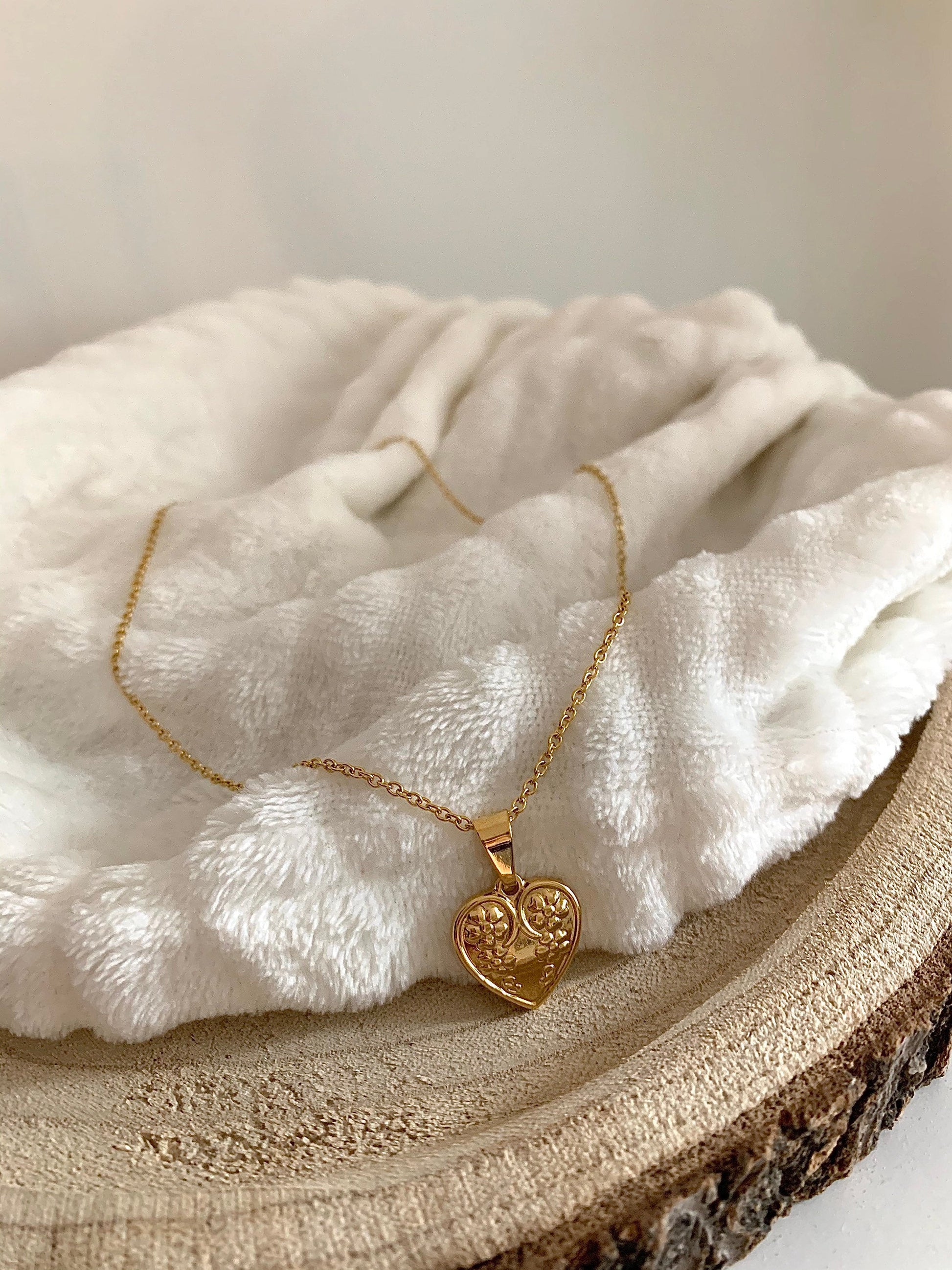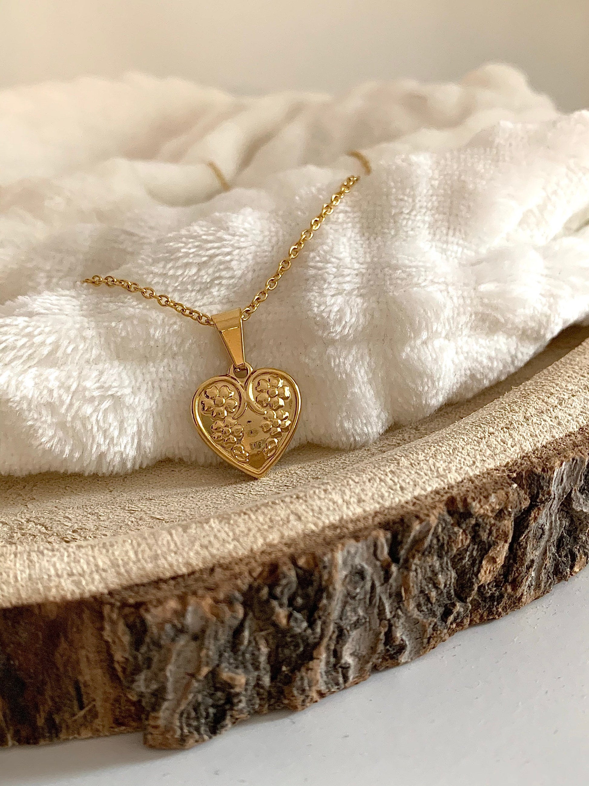 Goldene Halskette mit süßem Herzchen-Anhänger aus Edelstahl.