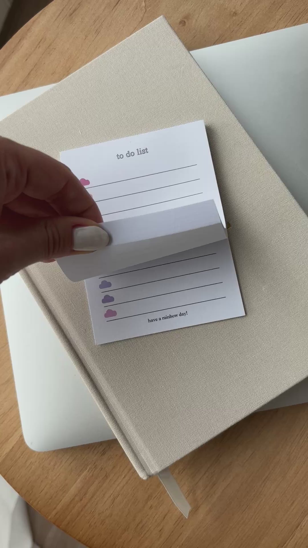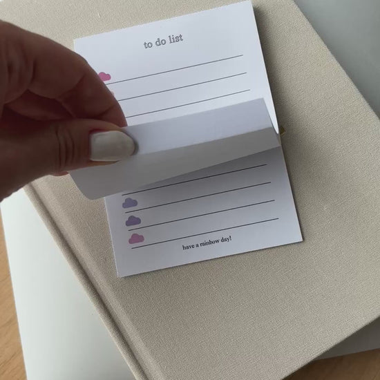 Unser liebevoll gestalteter To-Do-Block bringt Farbe in deinen Alltag – mit dem fröhlichen Spruch „Have a rainbow day“ und kleinen, bunten Wölkchen, die jedes Notieren zum Vergnügen machen.