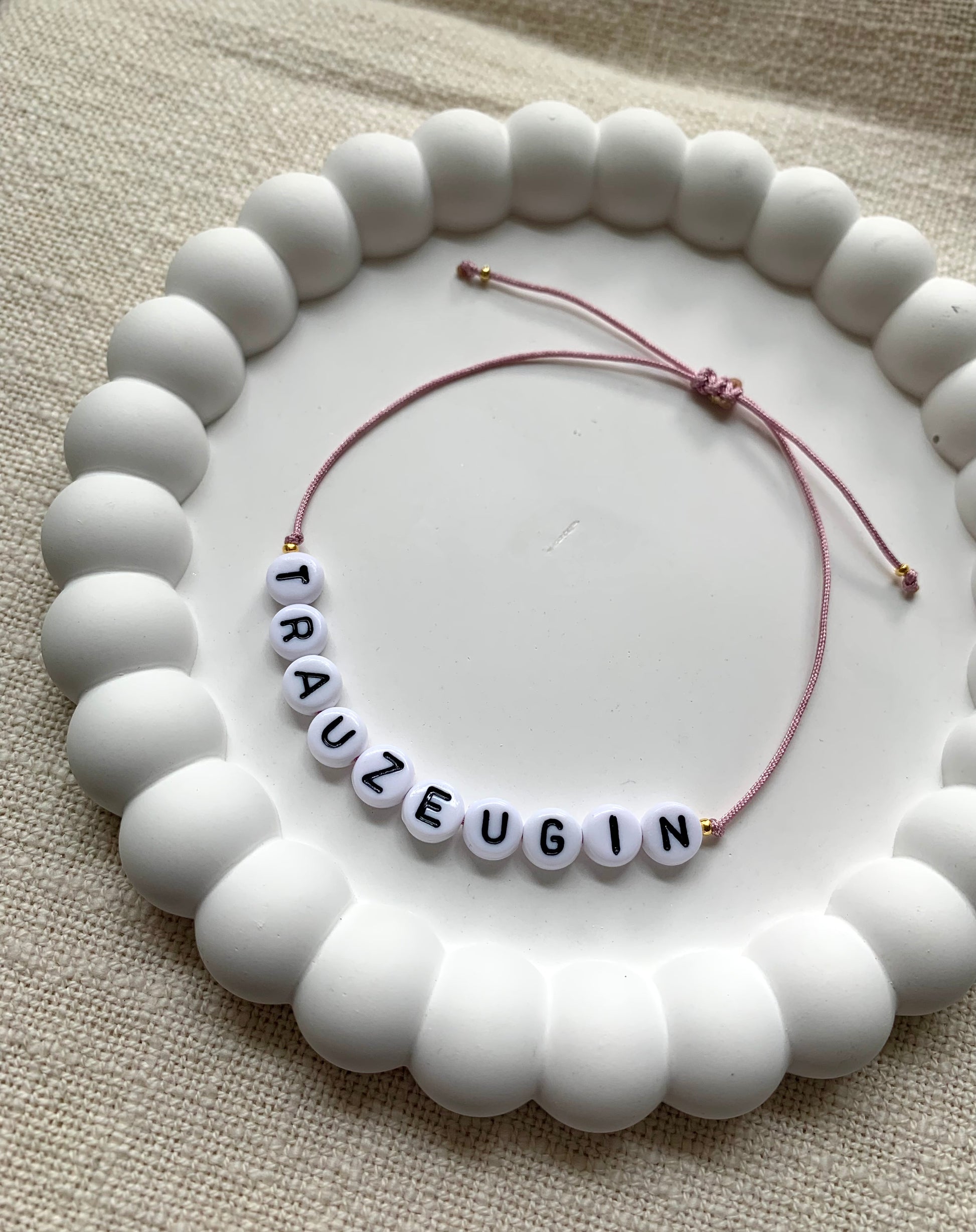 Wähle bei der Bestellung einfach deine gewünschte Bandfarbe aus und die Farbe der kleinen Kugeln (Silber oder Gold).