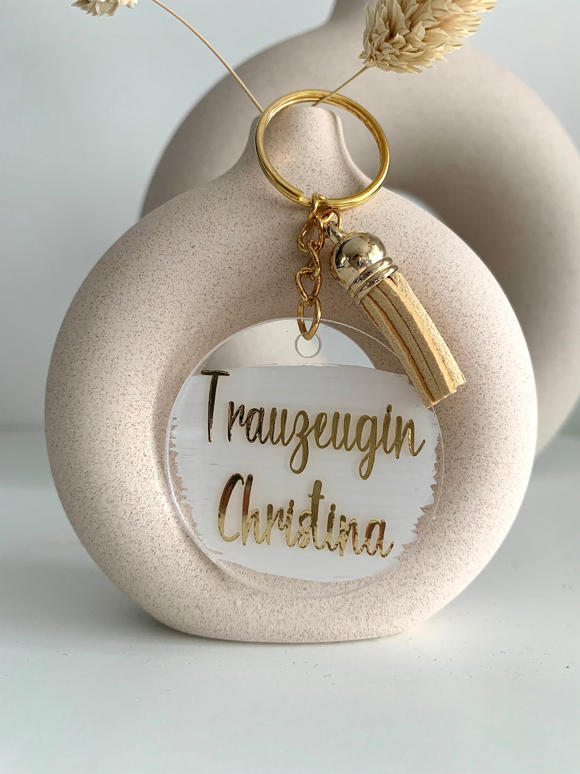 Ihr könnt noch eure Anhänger auswählen: Quaste gold, Quaste Silber oder weiße Schleife.