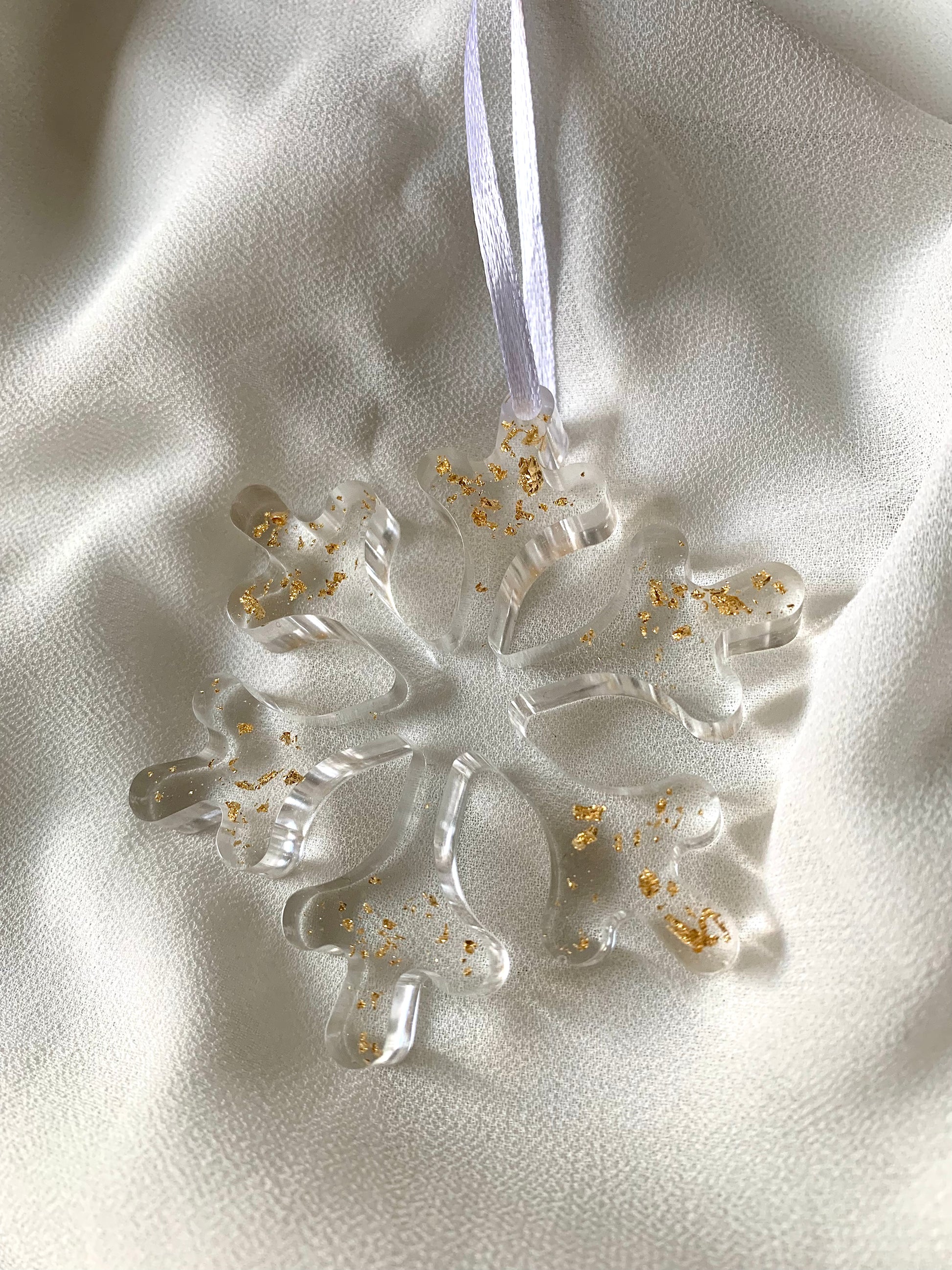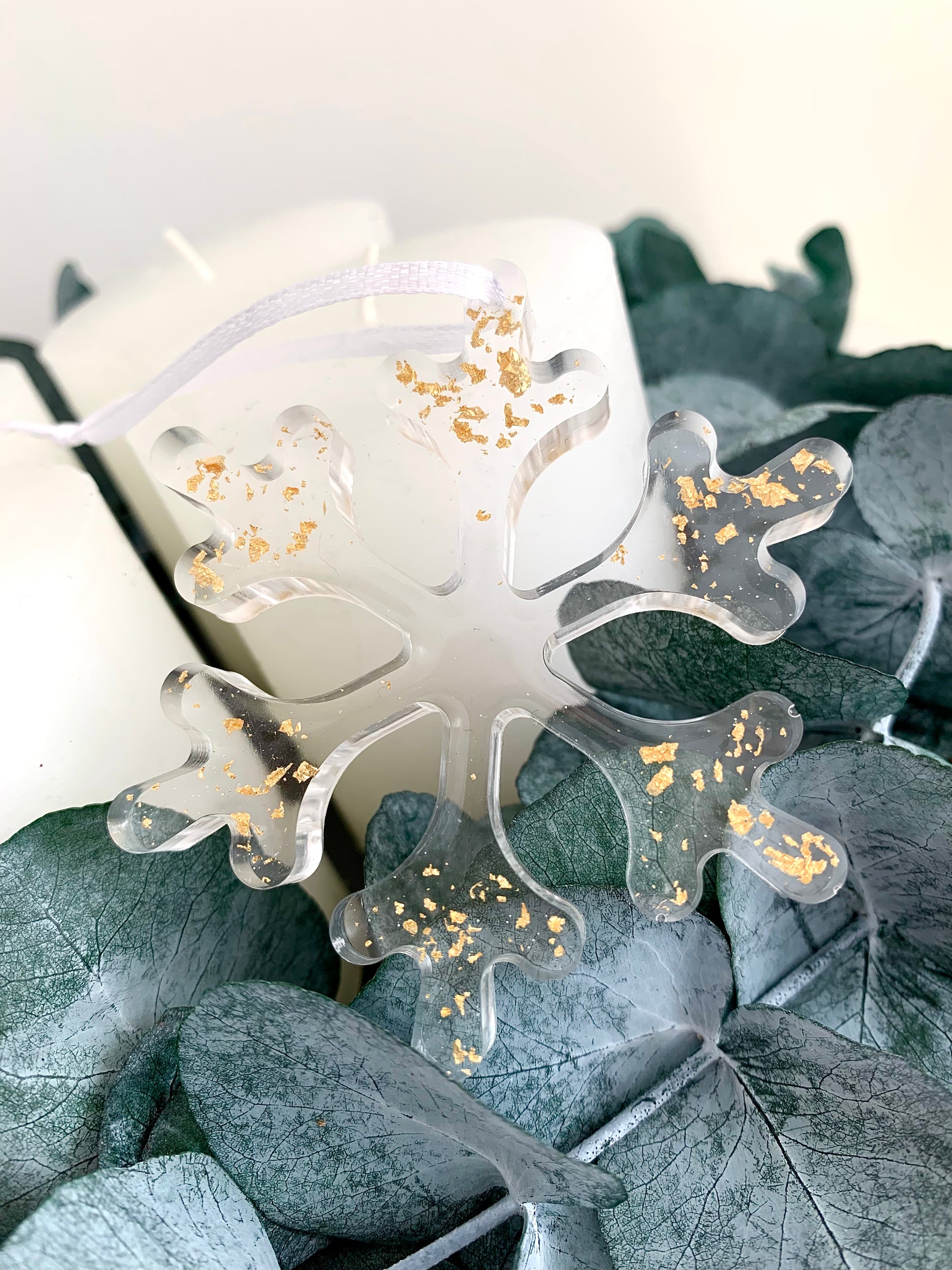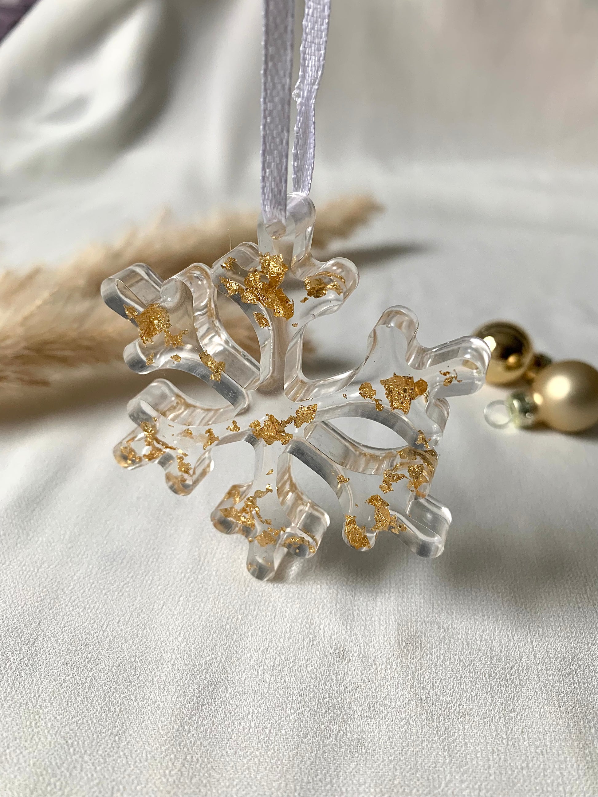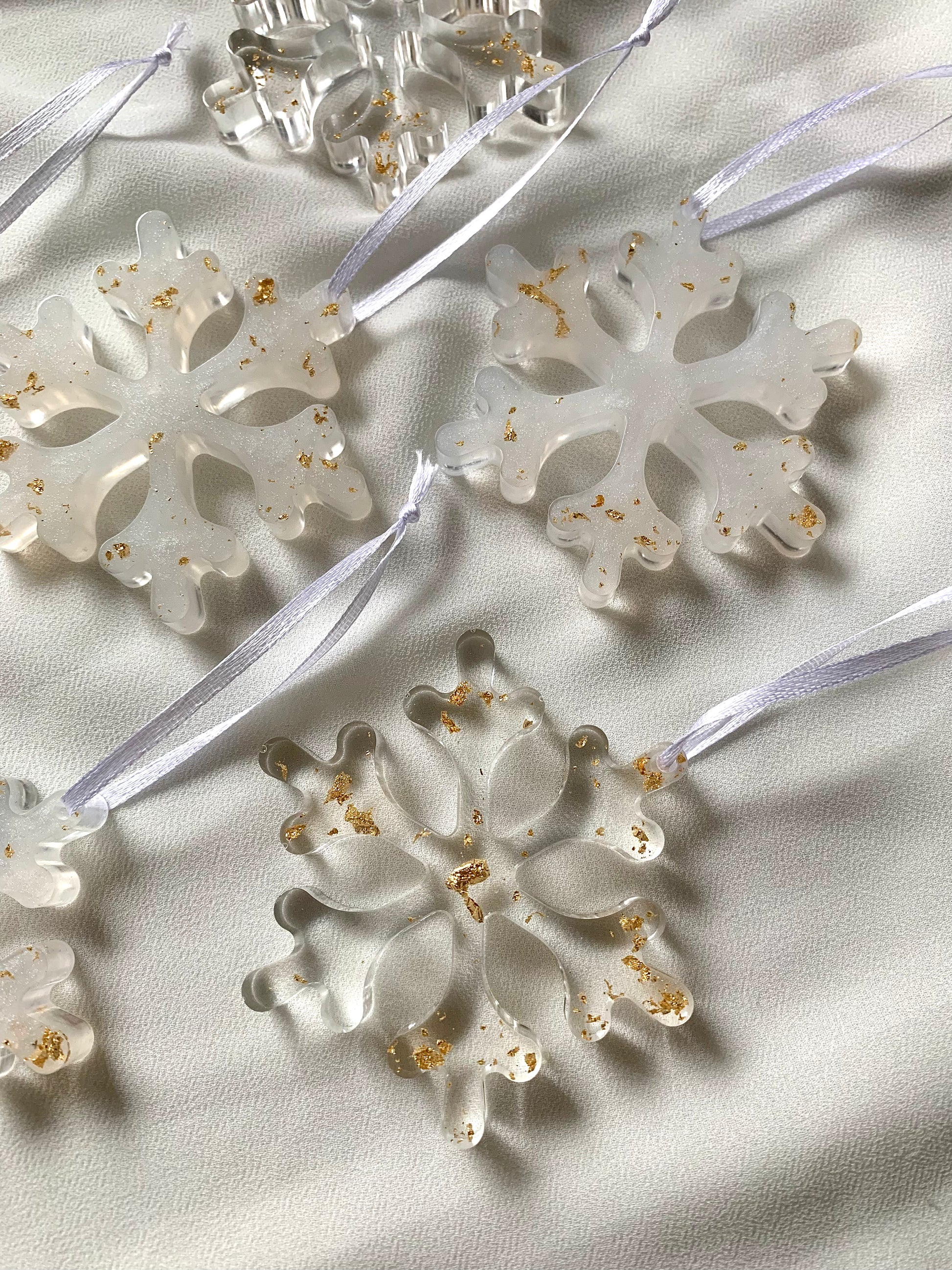 Süße, handgefertigte Schneeflocken aus Resin (Epoxidharz) als Christbaumschmuck, zum Verschenken oder einfach nur als Dekoration.